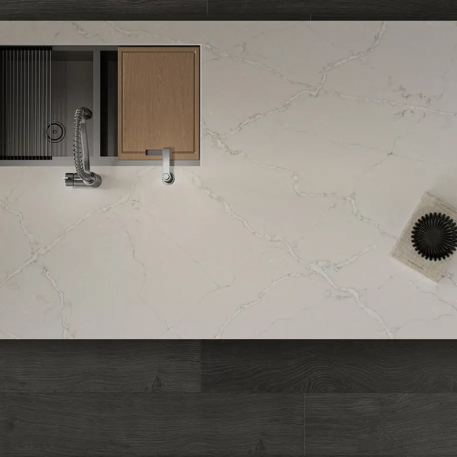 Victorian Silver features a soft, subtle two-toned marbling with gradient effects that impart great depth. Its cool background tone harmoniously blends with silver and dark grey veins, resulting in an elegant hue that effortlessly integrates with both warm and cool palettes.